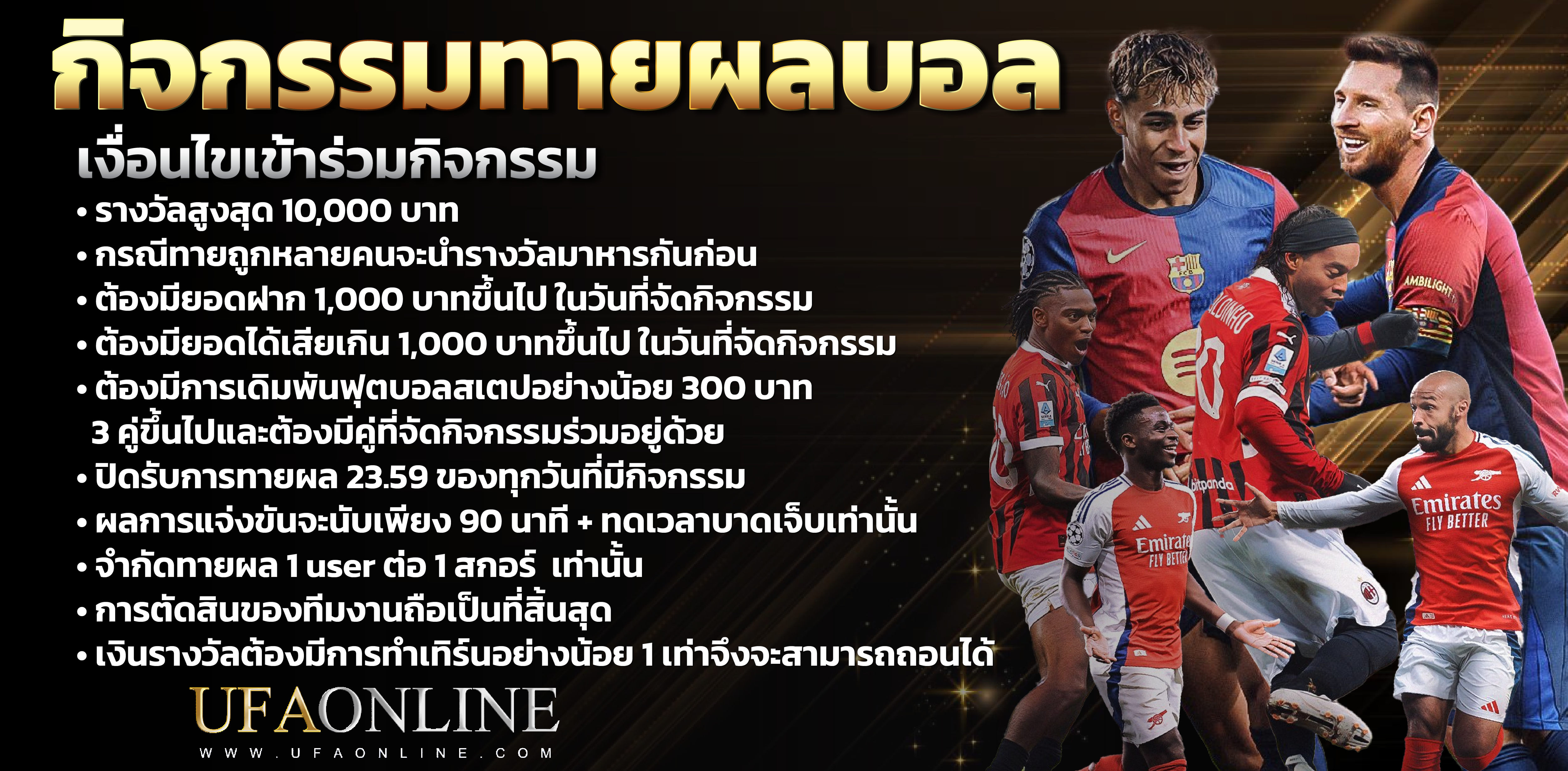 • จำกัดทายผล 1 user ต่อ 1 สกอร์ เท่านั้น หากทายหลายสกอร์ ถือว่าตัดสิทธิ์
